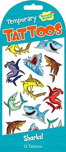 -. Binding : Toy -. Brand : Peaceable Kingdom -. EAN : 0643356050680 -. Feature : Kids love temporary tattoos because its always fun to show your colors / Whether you like to wear a Great White on your cheek or a Hammerhead on your hand, everyone can see what makes you smile / Peaceable Kingdom tattoos always feature artwork that is bright, colorful, age approP.R.Iate and tasteful / Includes one sheet of 12 temporary tattoos / For ages 3 years and over -. Genre : Party -. IsAdultProduct : 0 -. Label : Peaceable Kingdom -. Manufacturer : Peaceable Kingdom -. Model : TA15 -. MPN : TA15 -. PackageQuantity : 1 -. PartNumber : TA15 -. ProductGroup : Toy -. ProductTypeName : TOYS_AND_GAMES -. Publisher : Peaceable Kingdom -. Studio : Peaceable Kingdom -. Title : Peaceable Kingdom Sharks Temporary Tattoos -. UPC : 643356050680