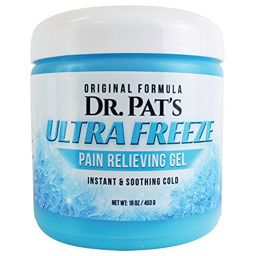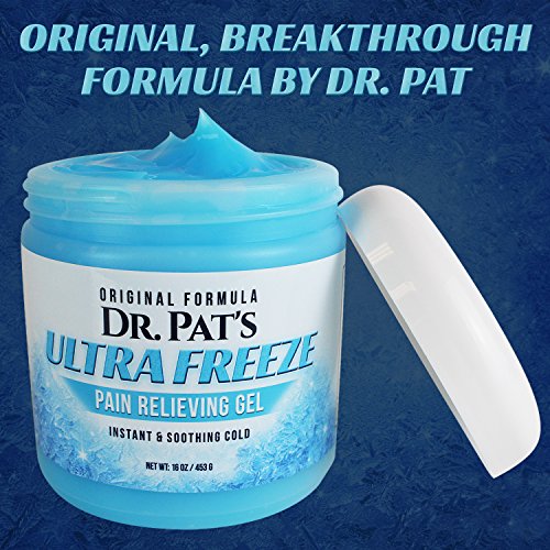 GREAT FOR: Arthritis, Back Pain, Carpal Tunnel Syndrome, Tennis Elbow, Golfer's Elbow, Tendonitis, Bursitis, Sciatica, Neck and Shoulder pain , Hip Pain, Shin Splints, Neuropathy, Fibromyalgia, Plantar Fasciitis, Ankle Sprain, Heel Pain, Chronic Pain IMMEDIATE, LONG-LASTING AND SOOTHING RELIEF Dr. Pat's Original Formula is the preferred pain relieving gel for arthritis, sore and stiff muscles, and joint aches and pains. The proprietary menthol cooling formula immediately cools your skin and intensifies over time. Upon reaching the maximum level of relief, the Ultra Freeze formula will sustain the soothing sensation for 30 minutes or more. 8 X MORE [16 OZ TUB] Dr. Pat's original formula comes in a 16-ounce jar of effective, cooling pain relief. Others offer half-dollar size (2 oz.) containers. We want Dr. Pat's formula to be there when you need it, others want you to reorder frequently. 100% RISK-FREE PURCHASE, MONEY BACK GUARANTEE Try Dr. Pat's Original Formula with a risk-free purchase. If you are not completely satisfied, get a prompt and courteous refund - no questions asked. We are here to relieve your pain, if we can't do that, we do not want your money. MADE IN USA Each batch of Dr. Pat's Original Formula is made in the United States for guaranteed quality and consistency. 0 |