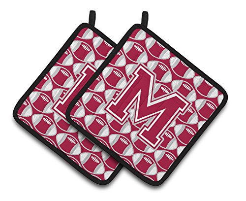 Caroline's Treasures Letter M Football Crimson, Grey & White Pair of Pot Holders CJ1065-MPTHD, 7.5HX7.5W, Multicolor