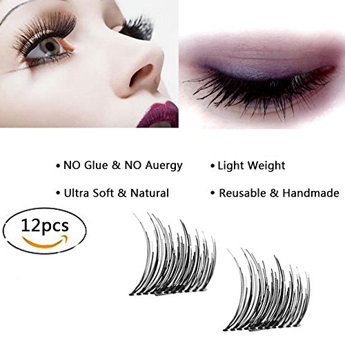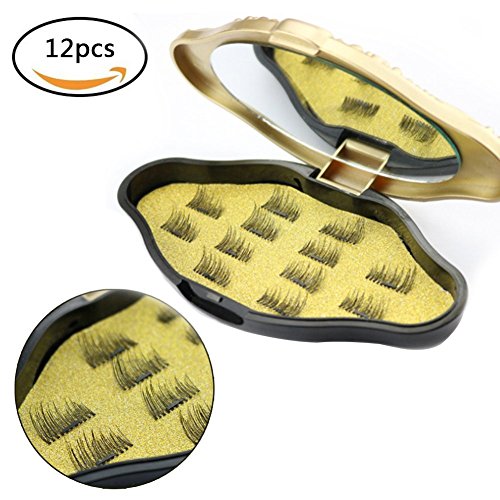 Magnetic False Eyelashes Extension Set with Makeup Mirror Case - Denkonni (12 pieces) Ultra Thin 3D Fiber Reusable Fake Lashes Extension Half Size Fake Lashes in One Set for Natural Look (3 Pairs)