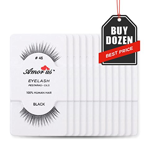 Amorus 12 Pairs Multipack #46 False Eyelashes Dozen Set 100% Natural Hair Black Handmade Comfortable Reusable Strip Fake Lashes Pack