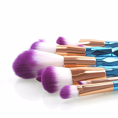 - Diamond Shaped 12 piece Brush Set Includes: Fishtail foundation brush, Powder brush, Small foundation brush, Precision shadow brush, Angled eye shadow brush, 2-Flat eyeliner brushes, Blending shadow brush, 2-Angled liner brushes, Concealer brush.