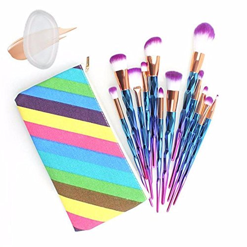 Valentine's Gift Set -Diamond Shaped Makeup Tools Brush Set -12 Piece with BONUS TRAVEL Cosmetic Bag & FREE SILICONE MAKEUP APPLICATOR