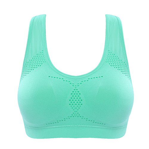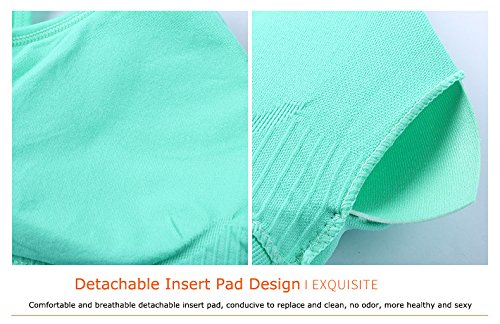 -. Feature : Material:90% Nylon,10% Spandex.Classic pullover style with racer back design for enhanced range of motion and easy layering.Tiny mesh decorated on the bra helps your skin to breathe more freely / Active workout racerback seamless sports bra &tight fitting for support / Medium Support and Elastic Closure/Super comfort and super soft fabric / Moisture wicking and perfect for any type of Physical Activity. / Constructed with Removeable Pads and Wide Shoulder Straps for a Cool and Comfortable Fit,seamless design to minimize chafing and 4-Way stretch to maximize comfort / Full coverage in the front; Avoiding breast sag and expanding to the two side, which conforms to your body's shape, giving you a comfortable and supportive fit / Ideal for everyday active lifestyle like Sports,Gym Exercise & Fitness,Yoga,Walking & Jogging & Running,Cycling,Boxing,Bowling,Tenis,etc.