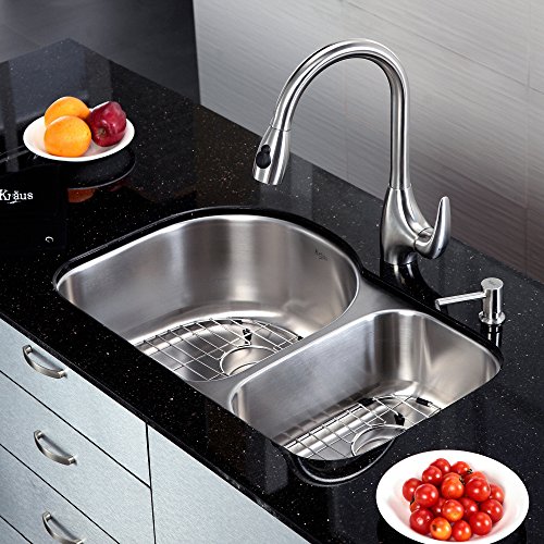 Kraus KBU21 30 inch Undermount 60/40 Double Bowl 16 gauge Stainless Steel Kitchen Sink