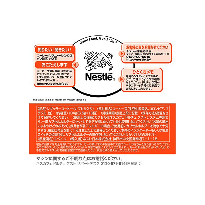 원본상품명: ネスカフェ ドルチェグスト 用カプセル レギュラブレンド カフェインレス 16杯分