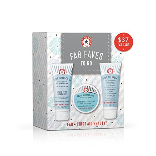 A trio of travel-sized First Aid Beauty favorites to cleanse, exfoliate and hydrate skin. This 3-piece kit includes Face Cleanser 2.0 oz., Ultra Repair Cream 2.0 oz. and Facial Radiance Pads 28 ct. Face Cleanser is a fragrance and sulfate-free gentle cleanser that effectively removes makeup, dirt and grime, leaving skin soft and supple. Facial Radiance Pads are daily treatment pads that contain just the right amount of Lactic and Glycolic Acids for safe and effective daily renewal that imparts radiant, glowing skin, even if skin is sensitive. Ultra Repair Cream is a head-to-toe moisturizer with a spectacular whipped, non-greasy texture that provides instant relief and long-term hydration for dry, distressed skin, even eczema.Feature