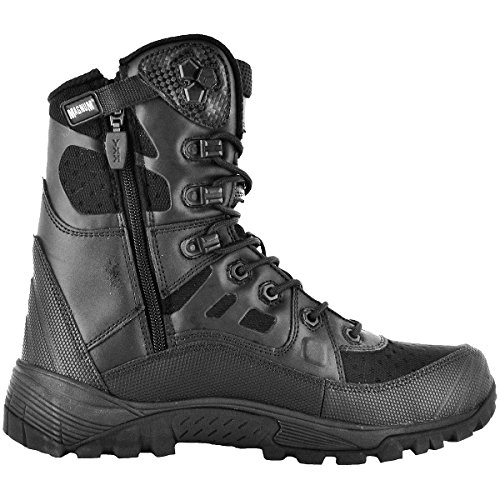 Studio : Magnum Publisher : Magnum Binding : Apparel Product Description With upper made of robust Action Leather and Nylon for durability and performance, the Magnum Lightspeed 8.0 Side Zip Boots sit above the ankle and feature a non-metallic and scanner safe composite shank for lightweight support, a fast wicking inner lining and OrthoLite footbed to keep feet dry, and a high traction Vibram rubber outsole designed for maximum grip. Moreover, the EVA midsole provides underfoot comfort and support while the EVA insole and padded foam contoured collar ensure comfort, support and flexibility all day long. The boots also come with speed lacing system for better fit adjustment and Nylon mesh tongue for breathability. Certified to European Standard EN ISO 20347:2012, Magnum Lightspeed Boots Side Zip are robust and comfortable tactical footwear designed especially for extreme conditions. 0
