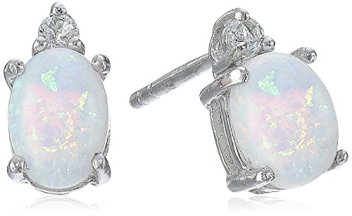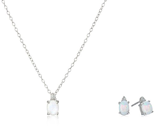 A Set of Stud Earrings and Pendant Necklace with 7x5mm Created Opal.