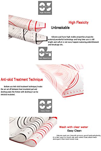 When you Order Today, you'll enjoy these benefits: ---Protect the environment and save money,reuse this mat over and over. ---Perfect gift for any occasion,it is a practical and beautiful kitchen accessories. ---Non-stick surface,easy to work with any dough,clean is simple and quickly. ---Pastry mat with conversion measurements,not worry about unit conversions.