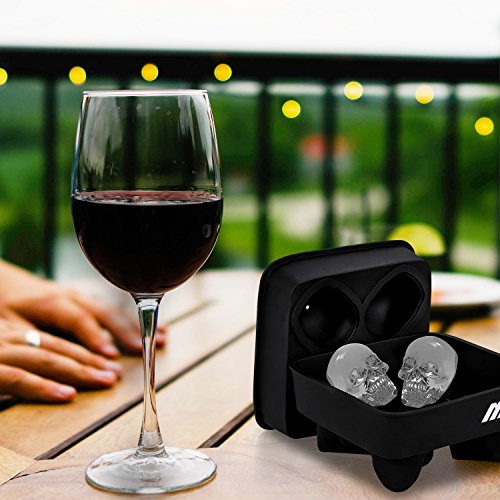 Adoric Life 3D Skull Silicone Ice Mold, Makes Four Giant Ice Skulls, Easy Release Ice Cube Trays for Chilling Bourbon, Whiskey, Cocktail, Beverages and More - Black