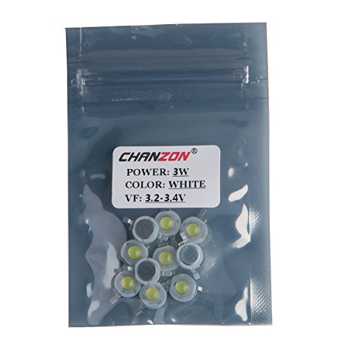 Chanzon 10 pcs High Power Led Chip 3W White (6000K-6500K / 600mA-700mA / DC 3V-3.4V / 3 Watt) Super Bright Intensity SMD COB Light Emitter Components Diode 3 W Bulb Lamp Beads DIY Lighting