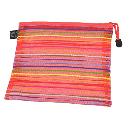 -. Title : Uxcell Stripe Pattern Zippered Meshy A5 Paper Document File Bag Folder, Red