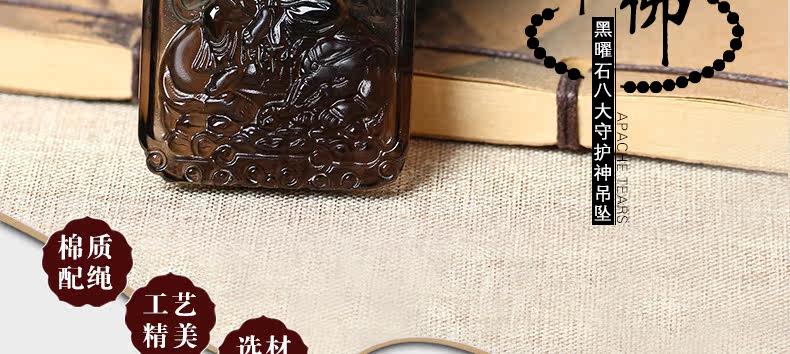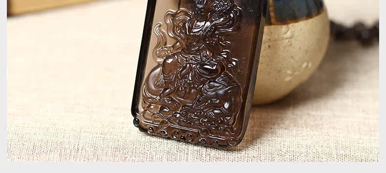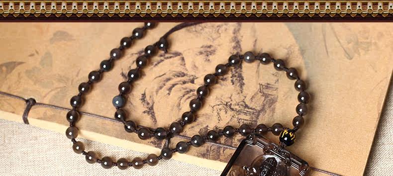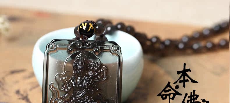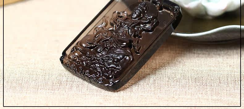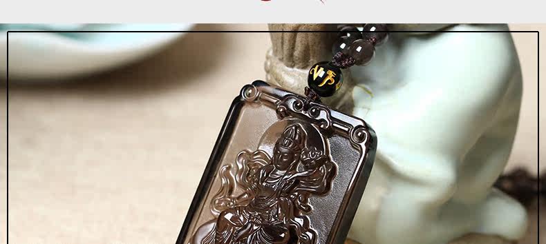 开光天然冰种黑曜石方形守护神普贤菩萨生肖属龙属蛇本命佛吊坠