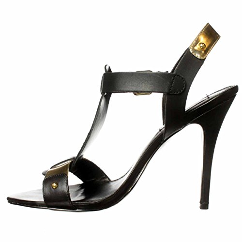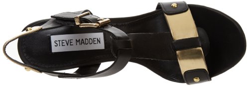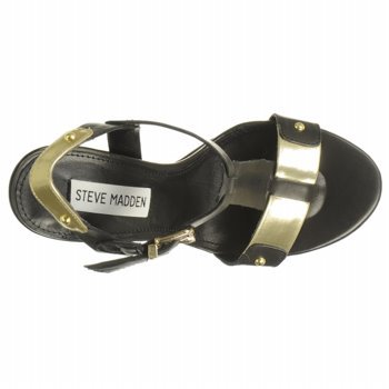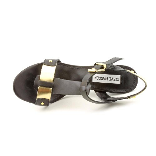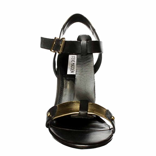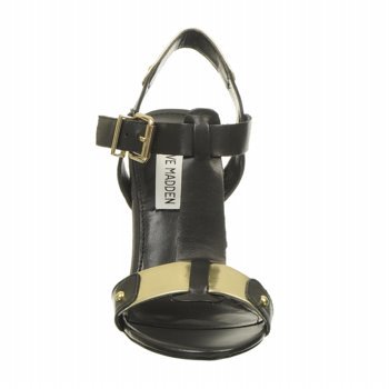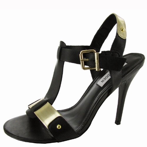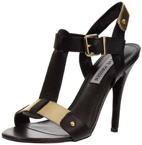 Studio : Steve Madden Publisher : Steve Madden Binding : Apparel Product Description Shiny hardware adds a chic touch to these Reya leather high-heel sandals from Steve Madden. The leather sandals feature a T-strap, side adjustable buckle closure, shiny hardware and a stiletto heel. Fits true to size 0