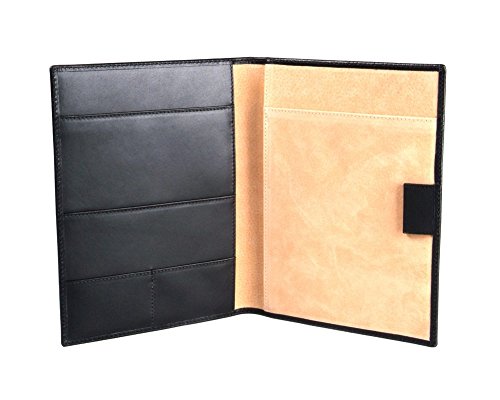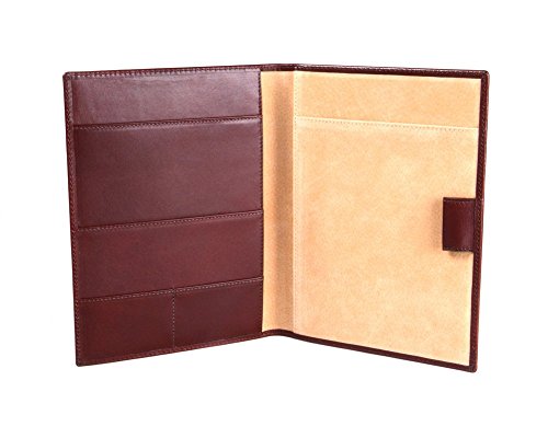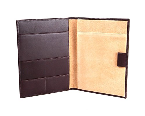 Studio : SageBrown Publisher : SageBrown Binding : Apparel Product Description With this sturdy hand sized A5 leather folder you will definitely make a professional impression when taking essential notes in a meeting. The front and back are plain and opens up to reveal a luxurious contrast suede lining. On the left there are two slip pockets and two slots for cards with a pocket behind and on the right there's a slot for an A5 notepad with a slip pocket behind and a leather pen loop. Made from fine durable calf leather this is a strong and reliable folder which will help you stay organised in style. 0