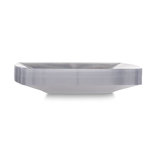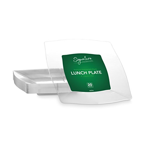 DISCOVER HOW EASY IT'S TO THROW A CELEBRATION THAT IS A SENSATION. Discover the joys of setting the table of your dreams with dishes that fulfill your desire for beauty as well as quality. Discover the Signature Collection. Prepare yourself for an overflow of oohing and ahhing from your diners. These plates are designed with wider and deeper edges keeping your foods contained and adding depth to the appearance. The wide rim will frame your dish making it simply picture perfect. And when the fun is over, be prepared for express cleanup with these "RESPOSABLES"!! ---BENEFITS AND FEATURES--- ? Contemporary square design with curved angles and wide rim to set your table to perfection ? Wow your guests and yourself alike ? Heavyweight plastic to ensure no sagging, tearing or breaking ? Perfect choice for weddings, banquets, corporate events, holidays, or family get-togethers ?Great for outdoor entertaining too ? Just toss these disposables and be on your way!!! ? Fun and Frugal?? Wash and reuse for your next event ? Pack of 20 SIGNATURE heavyweight square, clear with wide rim 8-inch lunch plates ? Makes a great gift for people who like easy entertaining and everyday elegance Isn't life better when we get together more often? Whether a for lunch or an extended family reunion, we believe in the value of spending time with friends and family. Busy lives and long to-do lists often get in the way, but when we simplify our events with disposables, we do get the time to get together. There's no better feeling. So what are you waiting for? Change The Look Of Your Table, WOW Your Guests With These Clear Wide-Rimmed Lunch Plates, And Set The Bar At An All-Time High. #1Unique Square Clear Wide-Rimmed Place Setting CLICK ADD TO CART NOW!!! 0