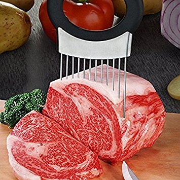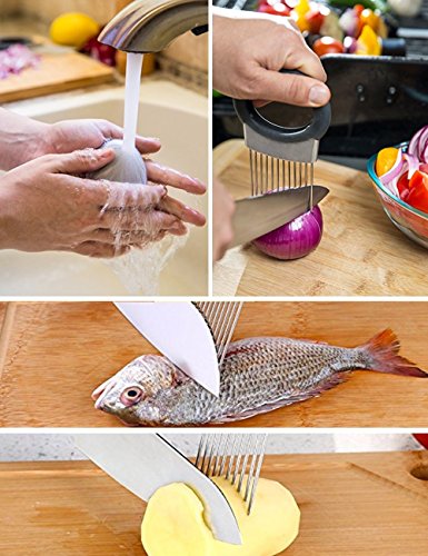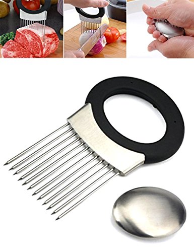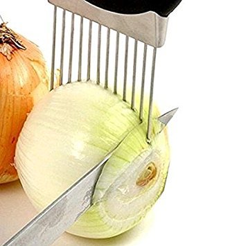 - Onion holder features unique stainless steel prongs that allow you to hold & slice onion hands-free