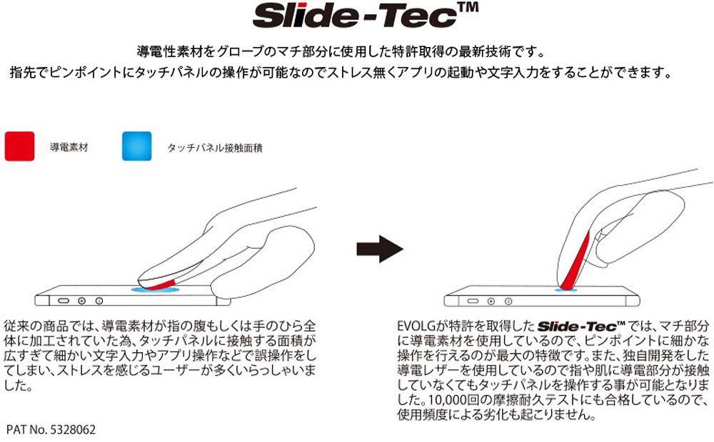 "EVOLG" enables comfortable operability while wearing gloves, by using special fiber yarns and a newly developed "ZITA-FABIC 2" fabric at the fingertips.