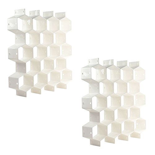 KLOUD City 3 Colors Household Plastic Partition Bee Style Underwear Socks Bras Ties Belts Scarves Drawer Divider Cabinet Clapboard (2 sets of White)