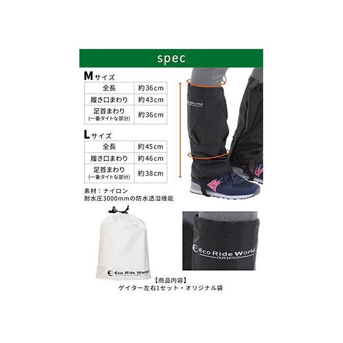 원본상품명: Eco Ride World 撥水 防水 ロングスパッツ ゲタ ゲイタ 登山 トレッキング