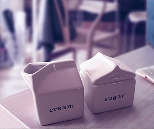 Size:75*75*80mm(3*3*3.15inch each) Creamer has an open carton pouring spout Sugar bowl has a closed carton topper High-fired earthenware Dishwasher-safe Brand : Kerchair EAN : 6126566270832 Package Dimensions(LxWxH) : 22x15x11cm ; 658 g