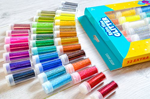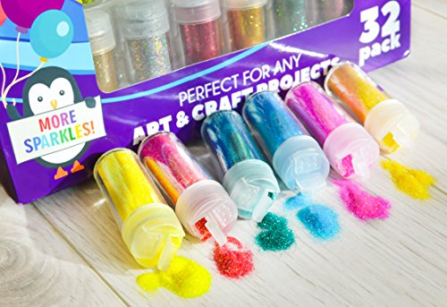 Glitter Art Set 32 pack - Ultra Fine Glitter for Slime - Craft Glitter - Art Supplies Glitter Shaker Jars - Extra Fine Glitter Set - Loose Glitter Pack - Slime Ingredients