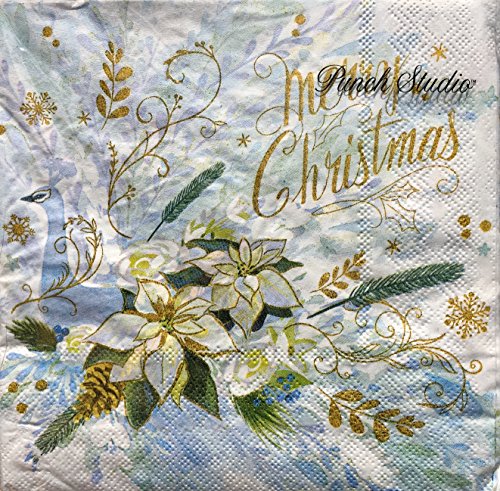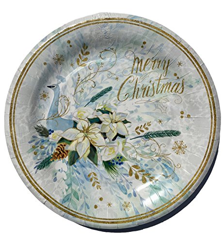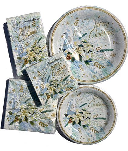 Punch Studio Dinner/Dessert Plates & Guest/Luncheon/Cocktail Napkins Set, Blue Winter Peacock