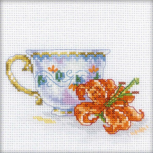 RTO EH308 14 Count Lily Tea Party Counted Cross Stitch Kit, 4.75 by 4.75-Inch