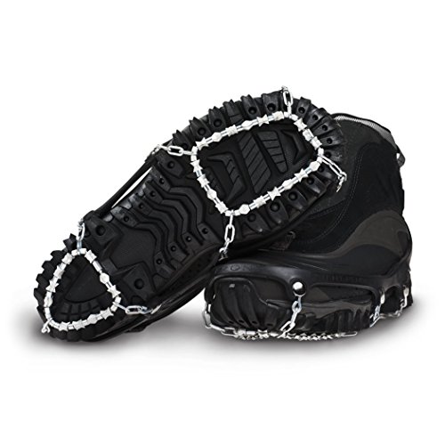 The ICEtrekkers Diamond Grips provide aggressive traction in all winter walking conditions, from boilerplate ice to backcountry snow and everything in between. As a result, you won't slip while walking to your car in the parking lot or working in tough snow conditions. They grips are also effective when transitioning through gravel, rock and mud from icy surfaces. Made of case-hardened steel alloy and strung on steel aircraft cable, the grips' patented diamond beads have hundreds of biting edges that grip in all directions. With the diamond beads, it's almost impossible to slip. The Diamond Grips are also easy to put and take off thanks to the tough rubber sling, which fits almost every footwear type, from athletic shoes to work boots to dress shoes. And the sling remains elastic even in subzero temperatures, so you needn't worry about the grips falling off in deep snow. Diamond Grips are even self-clearing, so there's no snow or ice buildup.Feature