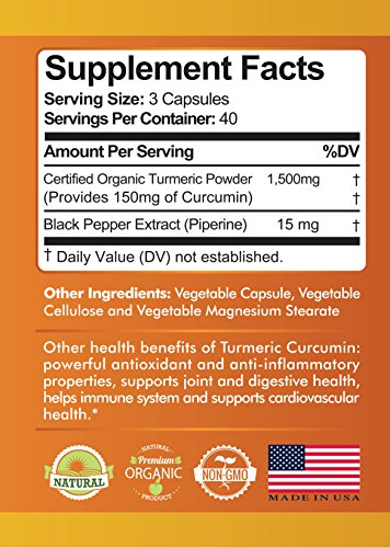 -. Title : Turmeric Curcumin with Black Pepper Extract - Organic Ingredient - 120 Powdered Veg Capsules, Powerful Anti-Inflammatory & Antioxidants - Promotes Joint Health, Helps Reduce Pain and Inflammation