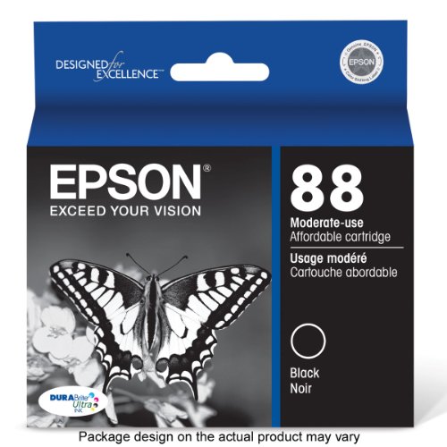 -. Binding : Office Product -. Brand : Epson -. Color : No -. Department : Computers-and-Accessories -. EAN : 0804993426010 -. Feature : Better quality than lab-processed P.R.Ints / Worry-free handling-smudge, fade and water resistant / Convenient individual cartridges / Excellent for double-sided P.R.Inting, because DURABrite Ultra ink doesn't bleed through / Acid-free Ink -. IsAutographed : 0 -. IsMemorabilia : 0 -. Label : Epson -. LegalDisclaimer : GENUINE EPSON BRAND NEW INK!This is such a low P.R.Ice because you DO NOT get the cardboard box. If you want a cardboard box, DO NOT order from me. Your ink order will be shipped via USPS First Class package and the ink will be in their factory fresh vacuum sealed plastic casing.DO NOT ORDER IF YOU WANT A CARDBOARD BOX! -. Manufacturer : Epson -. Model : T088120-S -. MPN : T088120-S -. NumberOfItems : 1 -. PackageQuantity : 1 -. PartNumber : T088120-S -. ProductGroup : Office Product -. ProductTypeName : INK_OR_TONER -. Publisher : Epson -. Studio : Epson -. Title : Epson T088120 DURABrite Ultra 88 Moderate-use Inkjet Cartridge -Black -. UPC : 803983092716 -. Warranty : Comes with Manufacturer Warranty.