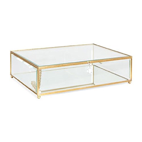 Vintage Style Brass Metal & Clear Glass Mirrored Shadow Box Jewelry Display Case