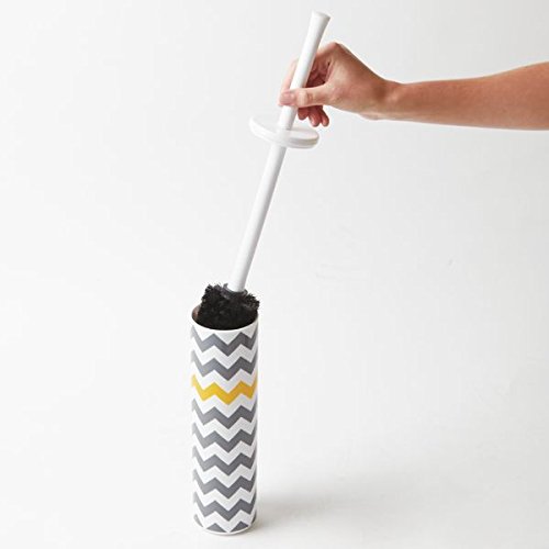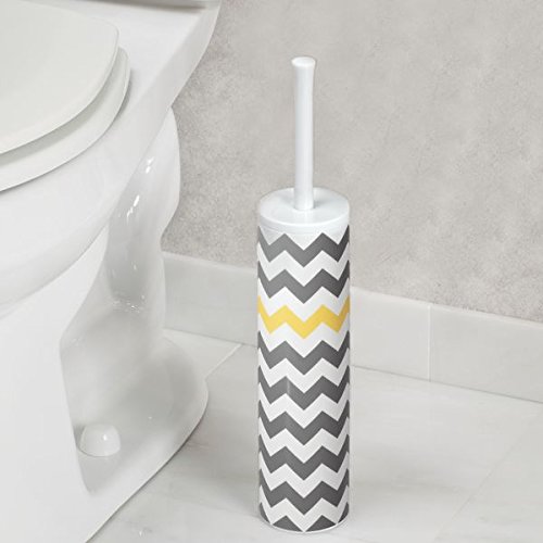 mDesign Slim Toilet Bowl Brush and Holder for Bathroom Storage - Gray/Yellow Chevron