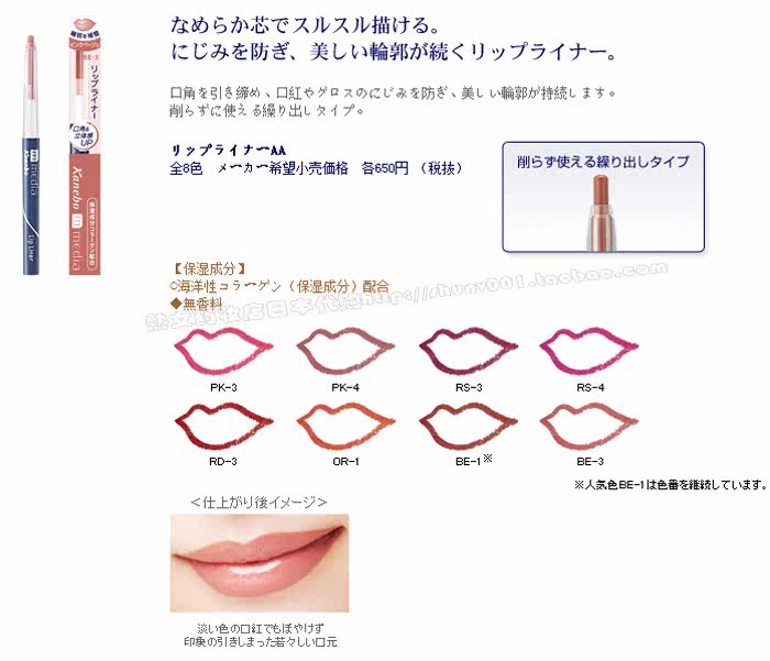 嘉娜宝/MEDIA 自动免削 唇线笔(全8色)
