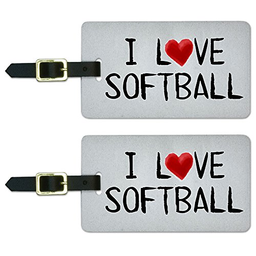 (Graphics and More)/Accessories/Luggage, Bags Travel/DIRECT FROM USA/I Love Softball Written on Paper Luggage Suitcase Carry-On ID Tags Set of 2