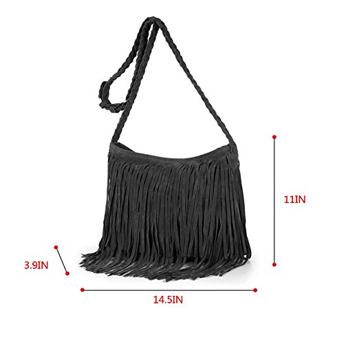 -. Title : AiSi Womens Hippie Fringe Cowgirl Tassel Faux Suede Shoulder Messenger Cross Body Tote Handbag