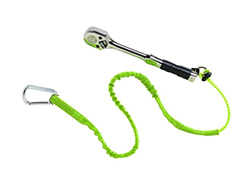 Adjustable barrel lock for tool attachment. Aluminum carabiner .Cord stretches for full range of motion .Stretchable cord surrounded by tubular nylon webbing with silver Mylar reflective thread .Tethers tools to worker to help prevent injury and lost productivity from dropped tools