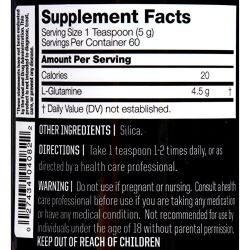 -. Feature : 4500 mg of pure L-Glutamine, / The most abundant free amino acid in skeletal muscle / Gluten Free, Yeast Free, Wheat Free / Unflavored