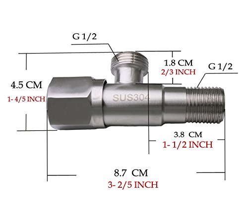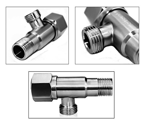FYRONDY Stainless Brushed Steel TWO WAY Angle Valve, G1/2" Inlet, G1/2" outlet
