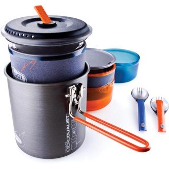 Product DescriptionIntegrated cooking system includes 1.4 Liter pot with strainer lid, insulated mugs and bowls, and collapsible eating utensils.
