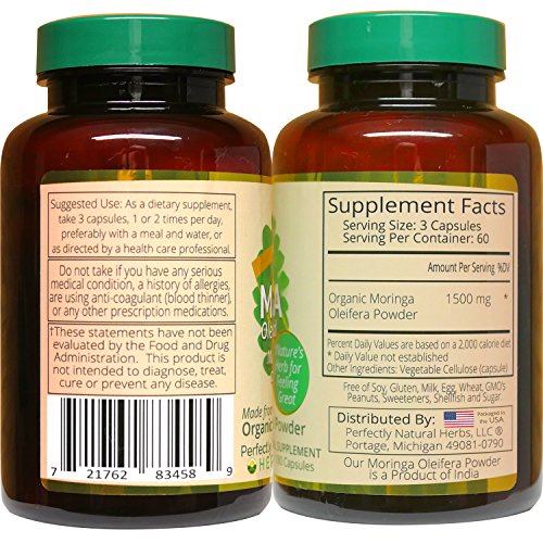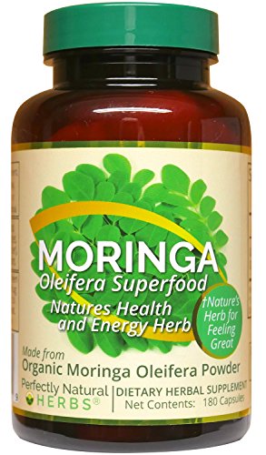 "This Is 180 Capsules" Made From Certified Organic Moringa Leaves by Perfectly Natural Herbs.