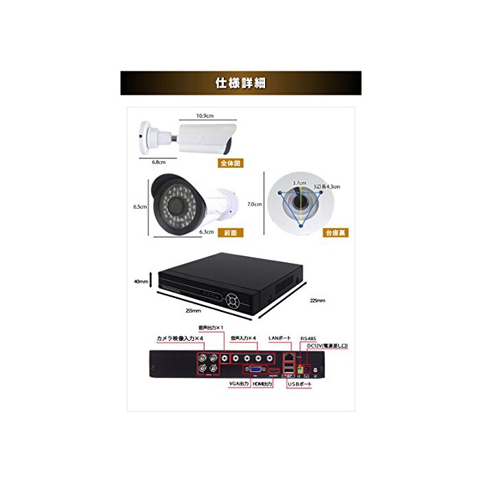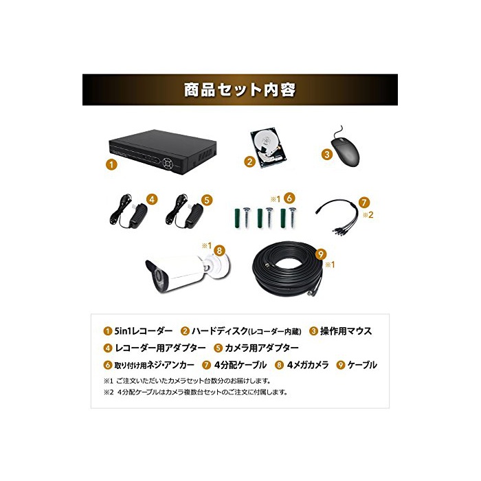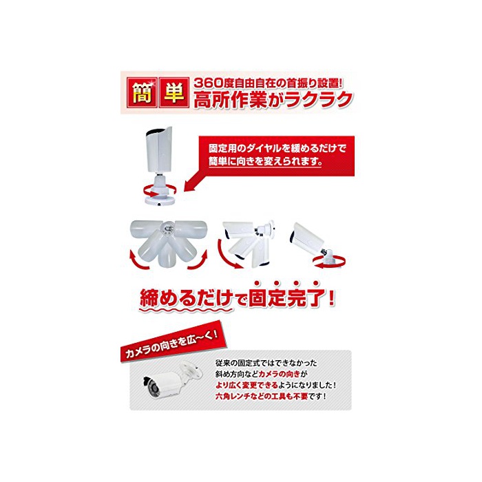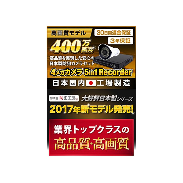 원본상품명: CCTVJAPAN 防犯カメラ 4台セット 400万素 2000GB 日本製 赤外線 搭載 遠隔監視 ホワイト 10mケブル付き