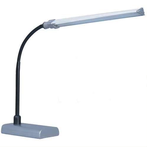 -. Feature : LED desk lamp with fully adjustable gooseneck column; 12-Inch diameter, 16-Inch tall / Metallic Silver finish / Contemporary design / On/Off switch / ETL listed, uses LED bulbs; bulbs included; Not CA compliant