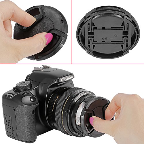 Neewer 58MM Camera Lens Cap Kit for CANON Rebel (T5i T4i T3i T3 T2i T1i), CANON EOS (700D 650D 600D 550D 500D 450D):(5)58mm Lens Caps+(5)Cap Keeper Leashes+(1)Microfiber Cleaning Cloth