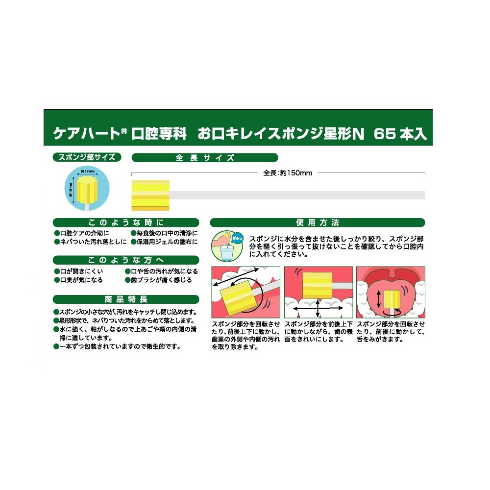 After making the sponge contain moisture, squeeze it tightly, please pull lightly on the sponge part and confirm that it can not come off and put it in the oral cavity.