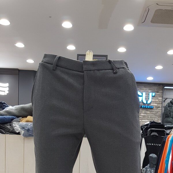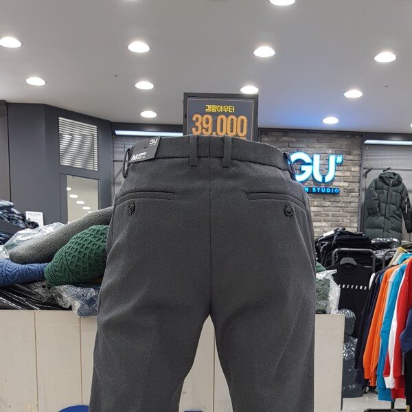 GU# 지유샵 사이드밴딩기모슬랙스 FUMWCPS101 (남성)(겨울) 양쪽 허리 옆 밴딩처리한 슬림핏 . 안감기모원단 보온성이 좋음.마네킨32착장.