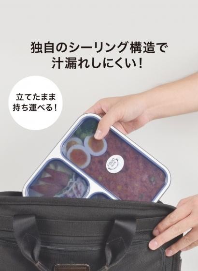 | A4サイズ幅で厚さ35mmの薄型弁当箱。通勤通学時の持ち運びがスマートに!!しっかり固定の4点ロックで汁漏れの心配もありません。ランチプレートの雰囲気で食べられて、容量も800mlとたっぷり入ります!! |