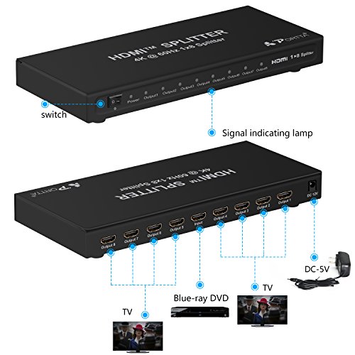 The HDMITM 4K splitter 1x8 lets you share eight HDMITM displays or projectors with an HDMITM-enabled audio / video source device. With support for Ultra HD (4K@60Hz) the HDMITM splitter ensures astonishing picture quality, four times the resolution of HD 1080p@60 Hz. The 4K splitter is also backward compatible with previous HDMITM revisions, supporting 1080p / 720p HDMITM video resolution devices. Even if you don't require 4K video today, the HDMITM 4K Splitter 1x8 ensures you'll be ready to take advantage of tomorrow's display technology.