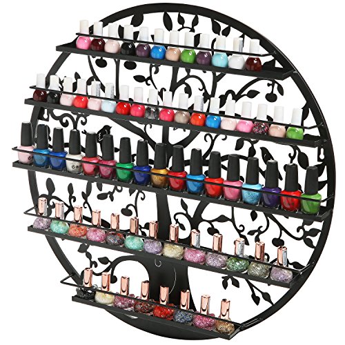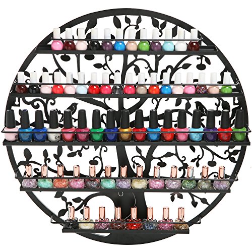 - Feature : A unique metal wall mounted nail polish rack designed to look like the "Tree of Life." Add this beautiful display of the universal symbol to enhance any wall space. / Gorgeous and practical, this nail polish rack features 5 tier shelving to provide you with a beautiful display all of your colorful nail polish bottles. Also ideal for displaying other small cosmetic bottles like aromatherapy or essential oils. / This high end salon inspired organizer is not only beautifully designed but durable for professional salon use. / **Official MyGift® product.** Nail polish bottles not included. / Approximate Dimensions: 23.6" L x 23.6" H x 2.75" W.